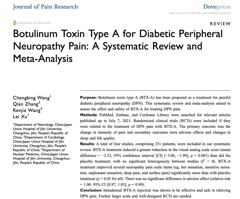 Is Botulinum toxin an option for diabetic neuropathic pain? https://www.ncbi.nlm.nih.gov/pmc/articles/PMC8687679/